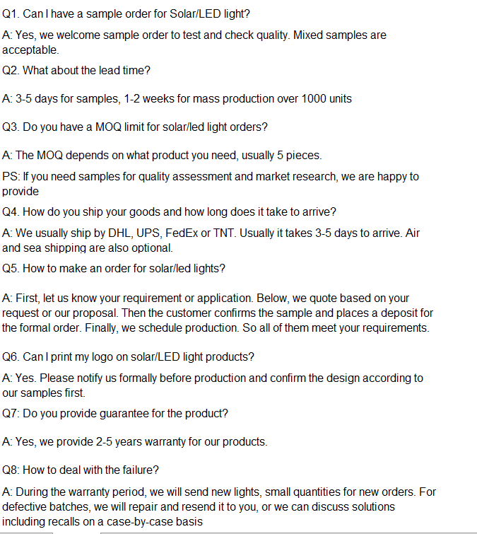 · פרמטרים של ביצועים: פטנטים מיובאים על אריזות שבבים גבוהים, חיסכון באנרגיה של 60 אחוזים מאשר פנסי הרחוב המסורתיים; עיצוב אופטי מוגן פטנט: תאורת הכביש גם ללא תופעת התלקחות;